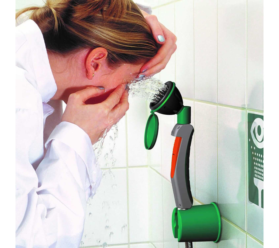 • Głowica 45° — szeroka dyspersja i delikatny strumień do skutecznego płukania oczu.