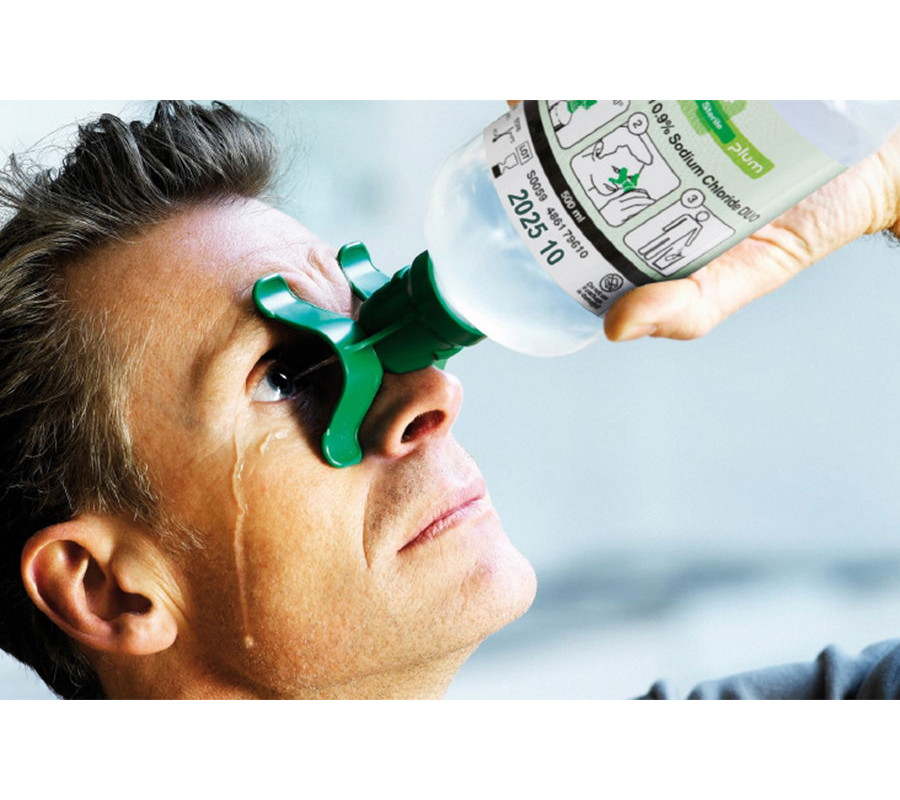 Tagi: płuczka do oczu, płyn do przemywania oczu, sól fizjologiczna, ergonomiczna końcówka, eyewash, BHP, Plum eyewash 500 ml, płukanka do oczu